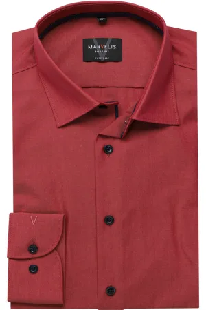 Marvelis Body Fit Overhemd baksteenrood, Effen
