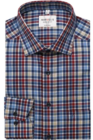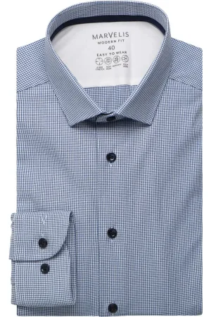 Marvelis Performance Modern Fit Overhemd marine/wit, Ruit