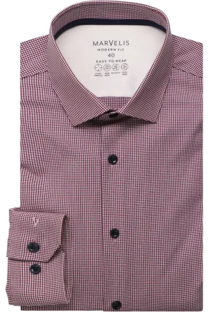 Marvelis Performance Modern Fit Overhemd rood/wit, Ruit