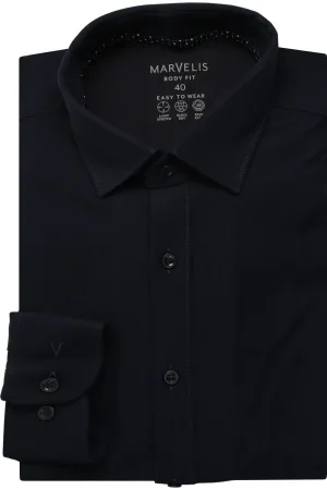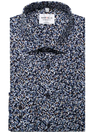 Marvelis Dynamic Flex Body Fit Overhemd marine, Gestreept