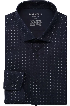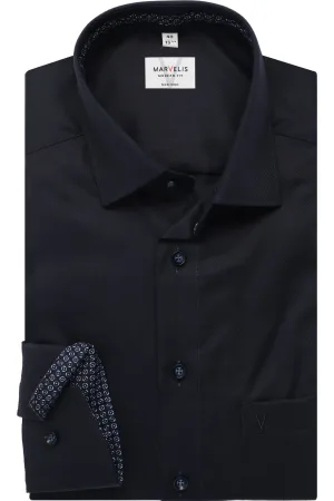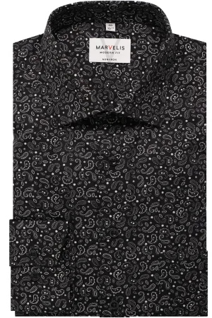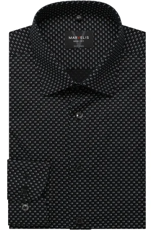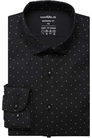 Marvelis Dynamic Flex Modern Fit Overhemd zwart, Stippen