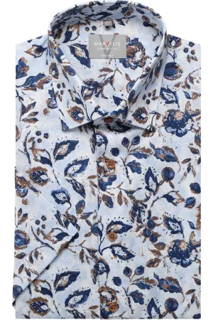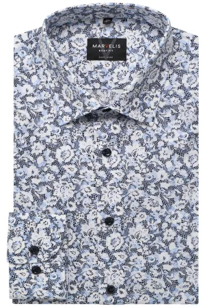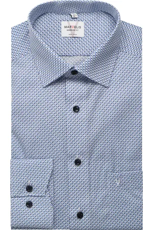 Marvelis Body Fit Overhemd blauw/bruin, Motief