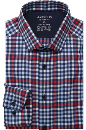 Marvelis Performance Overhemd blauw/rood, Ruit