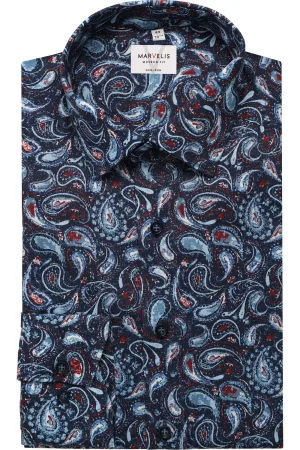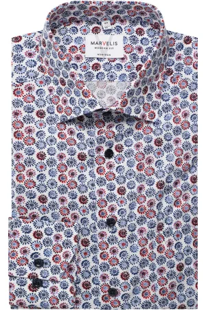 Marvelis Body Fit Overhemd blauw/bruin, Motief
