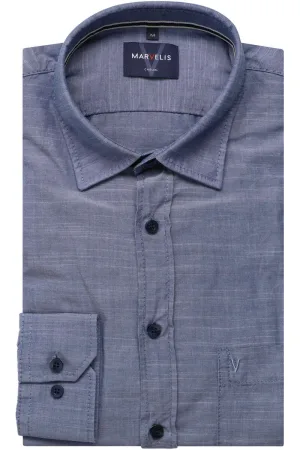 Marvelis Performance Overhemd blauw, Faux-uni