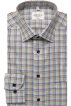 Marvelis Modern Fit Overhemd blauw/groen/wit, Ruit