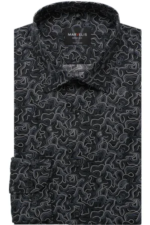 Marvelis Body Fit Jersey shirt zwart, Gestructureerd