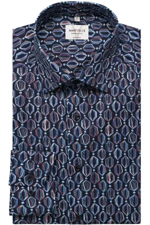 Marvelis Modern Fit Overhemd rood/blauw, Motief