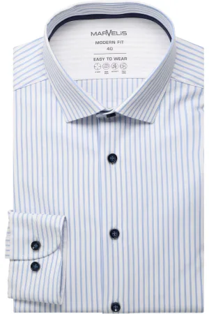 Marvelis Performance Modern Fit Overhemd blauw/wit, Gestreept