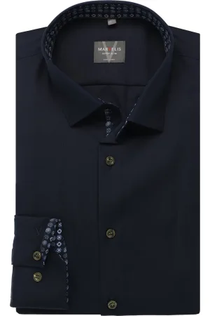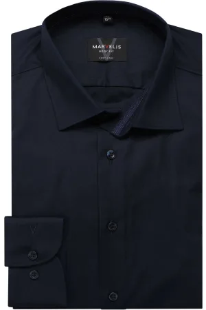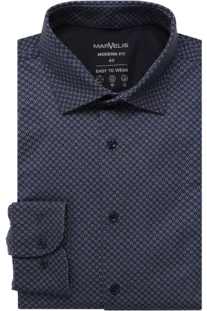 Marvelis Performance Body Fit Overhemd marine/blauw, Motief