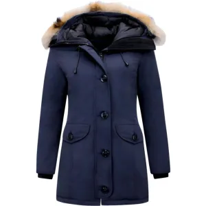 Dames Winterjas – Winterjas Dames Bontkraag – Slim Fit – Blauwe Jas