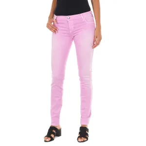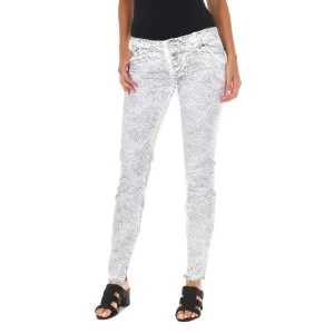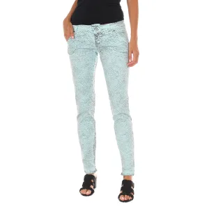 Bedrukte en elastische lange denim broek 10DB50210 vrouw