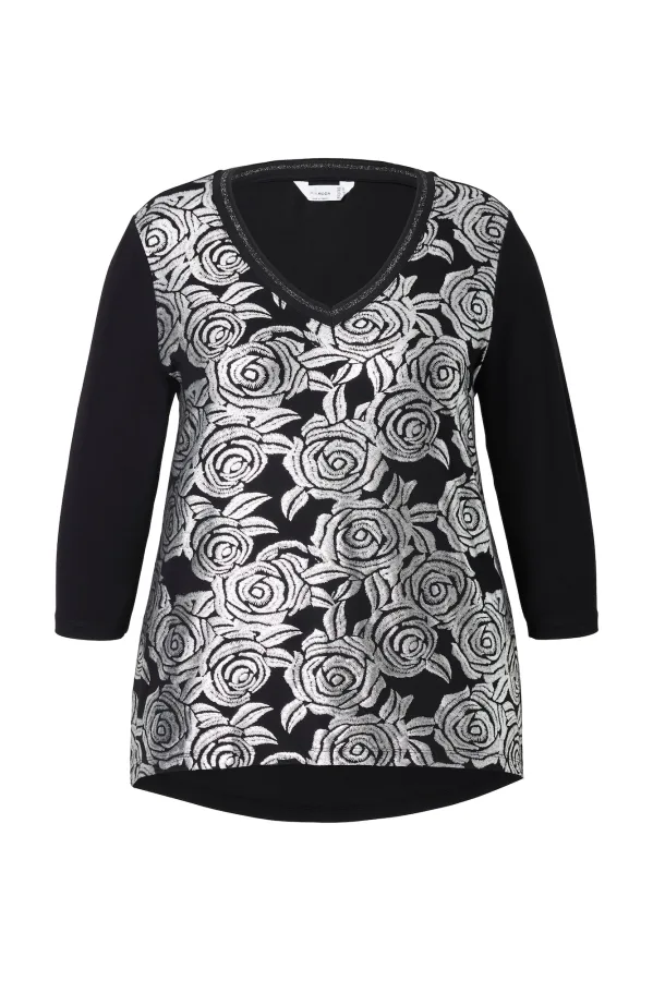 MIAMODA Blouse lichtgrijs / olijfgroen / spar / zwart