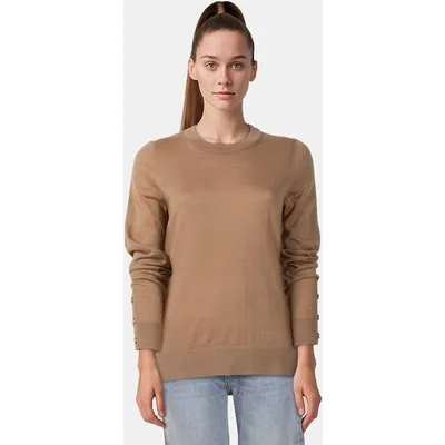 Michael Kors Merino Button Slv Ls Sweater Dark Camel