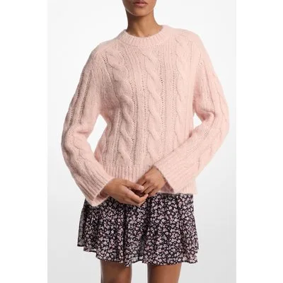 Michael Kors Cable Knit Crew Sweater In Rosewater Pink
