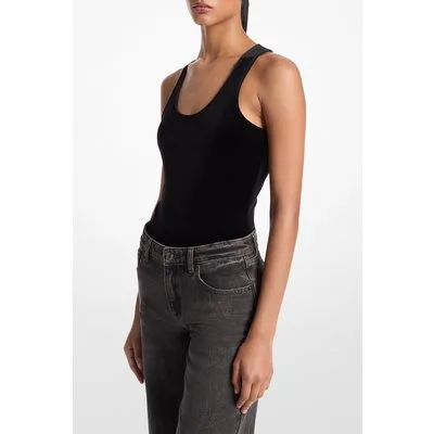 Michael Kors Velvet Tank Vest Bodysuit In Black
