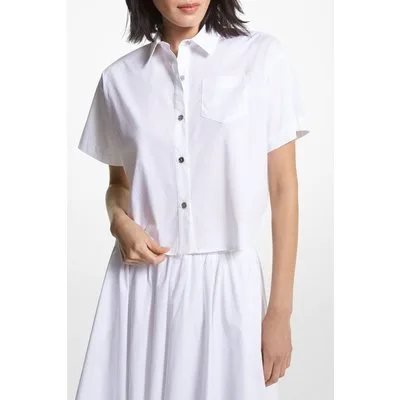 Michael Kors Cropped Button Down Shirt In White