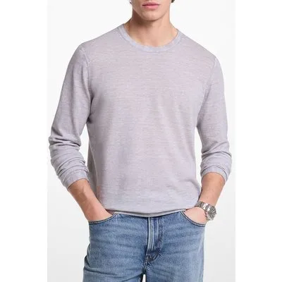 Michael Kors Long Sleeve Linen Mix Crew Neck Top In Grey