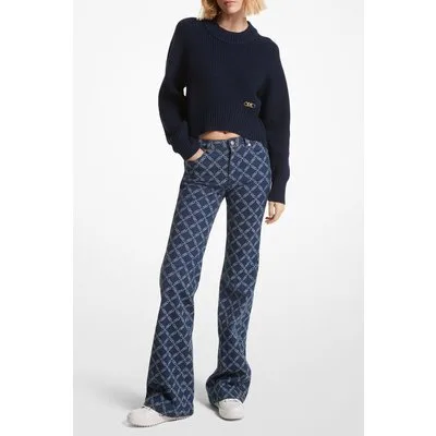Michael Kors Flared Denim Jean In All Over Logo Print
