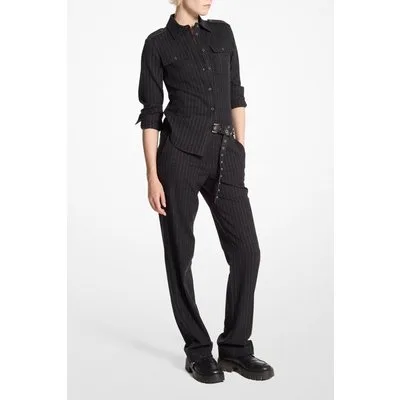 Michael Kors Wool Fitted Army Shirt Charcoalhthr