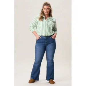 Miss Etam Plus gestreepte gestreepte blouse groen