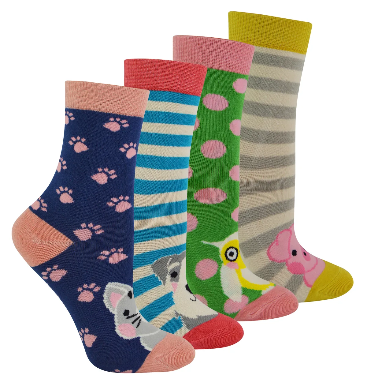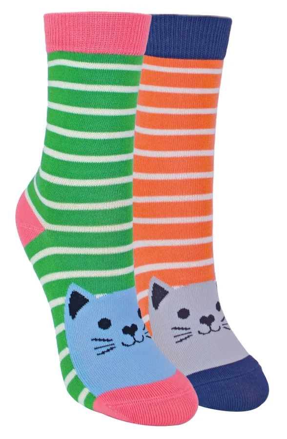 Set van 2 sokken met dierenprint voor meisjes | Miss Sparrow | Casual grappig patroon crew bamboe sokken | Grappige nieuwe sokken voor kinderen – Kitty Cats