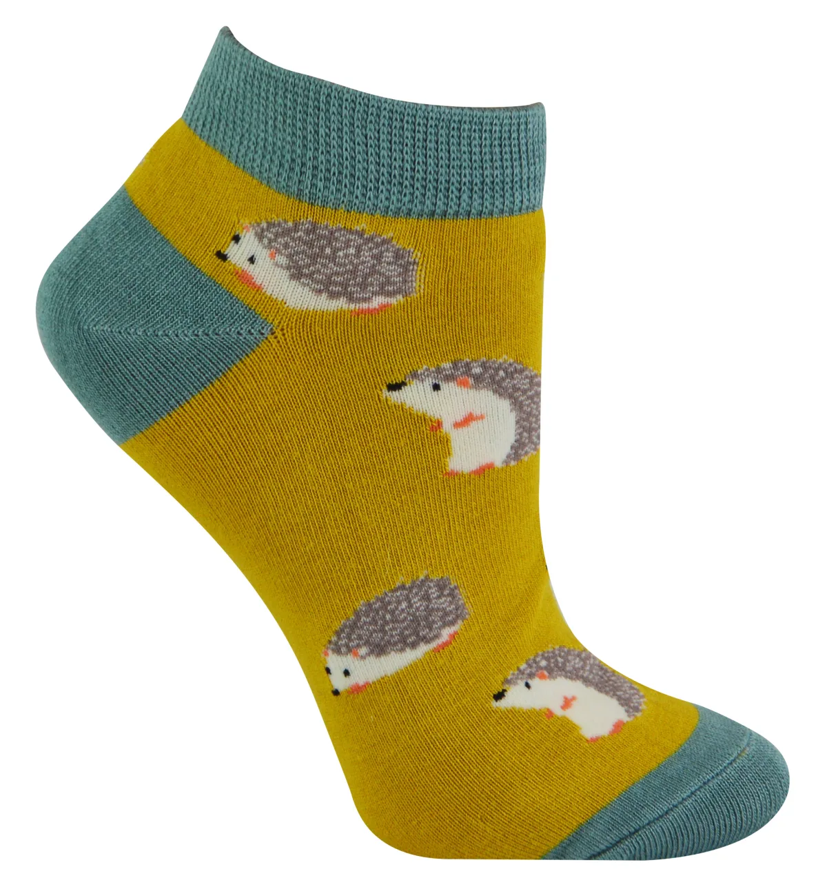 Miss Sparrow – Dames Bamboe Trainer Sokken – Hedgehogs (Geel)