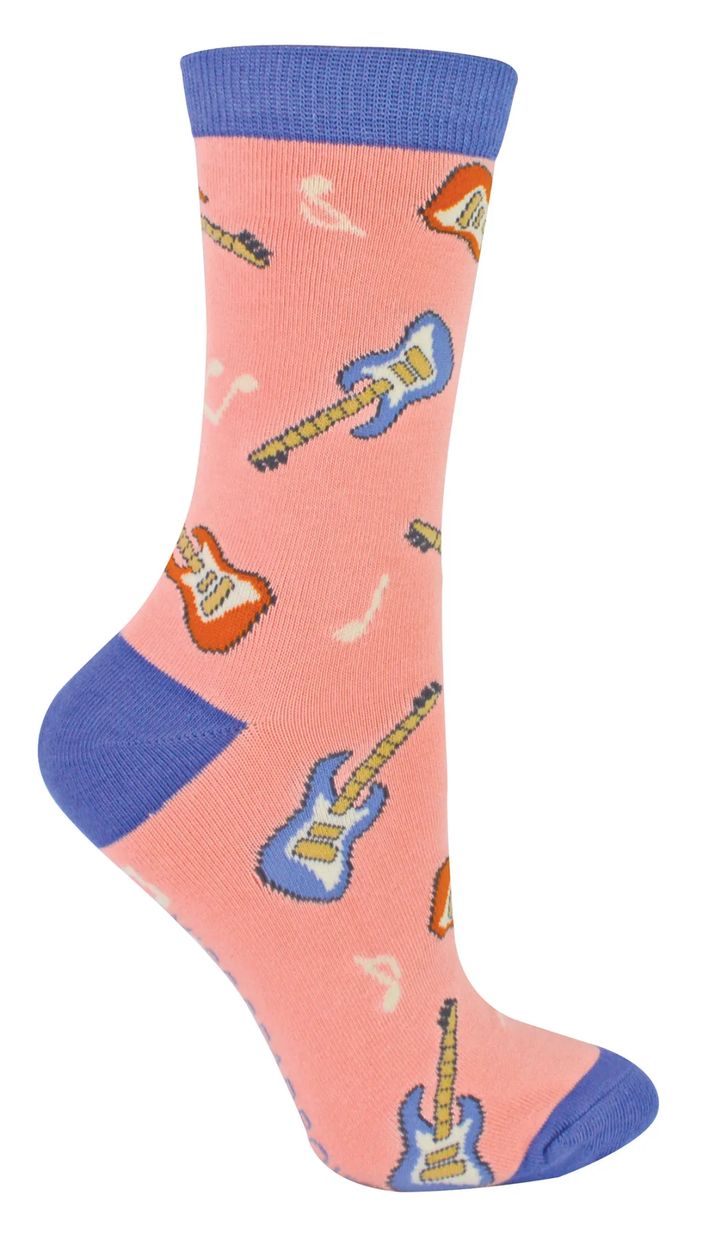 Miss Sparrow – Dames Gitaar Sokken – Grappige Gitaar Patroon Bamboe Sokken – Gitaar (Roze)