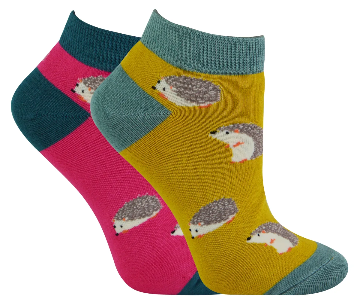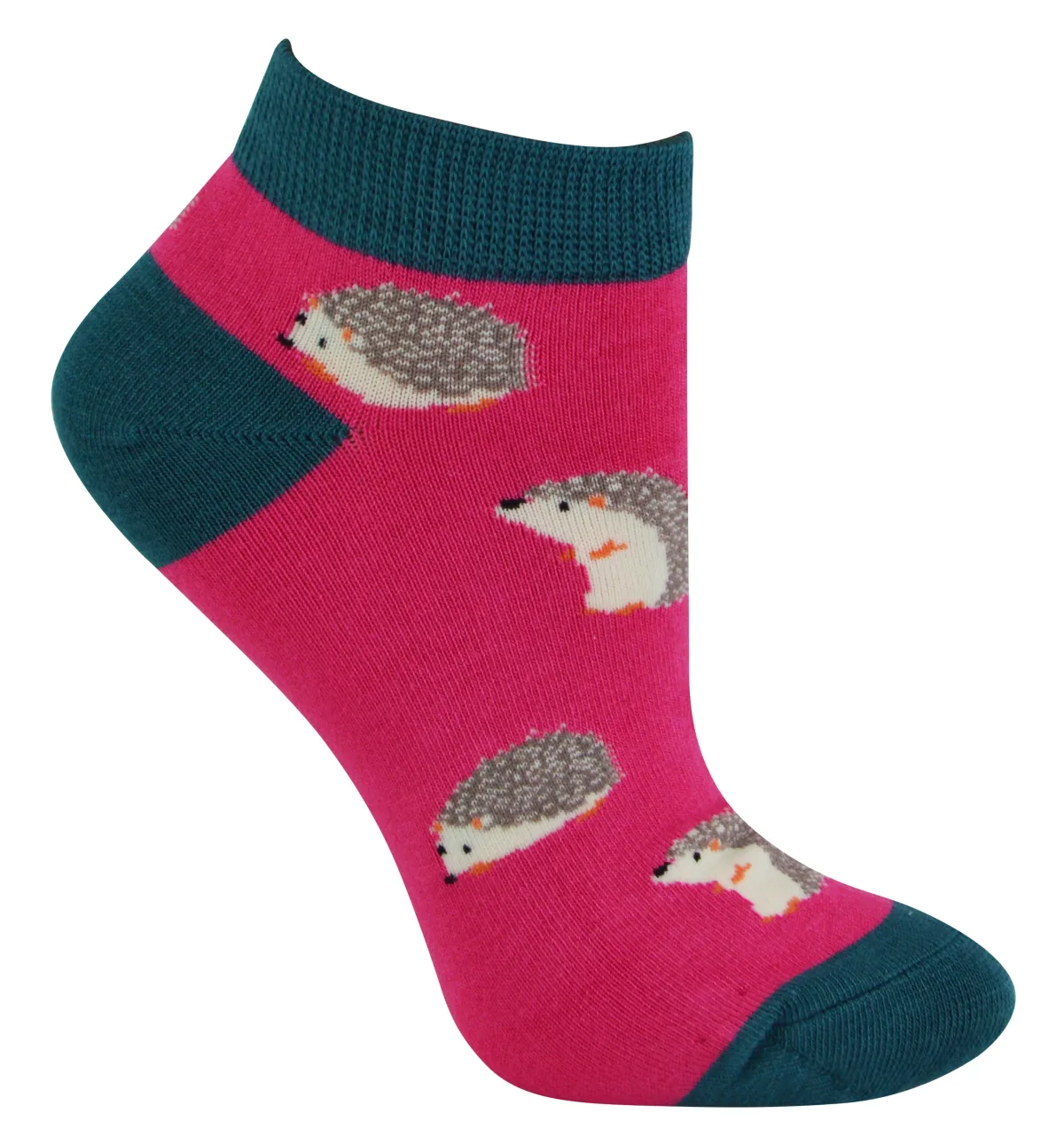 Miss Sparrow – Dames Bamboe Trainer Sokken – Hedgehogs (Hete Roze)