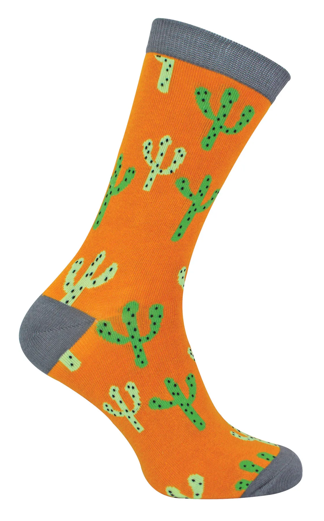 Heren Cactus Sokken | Mr Heron | Noviteit Kleurige Grappige Plant Geprinte Bamboosokken | Bijzondere Kerstgift voor Hem – Cactussen (Mosterd)