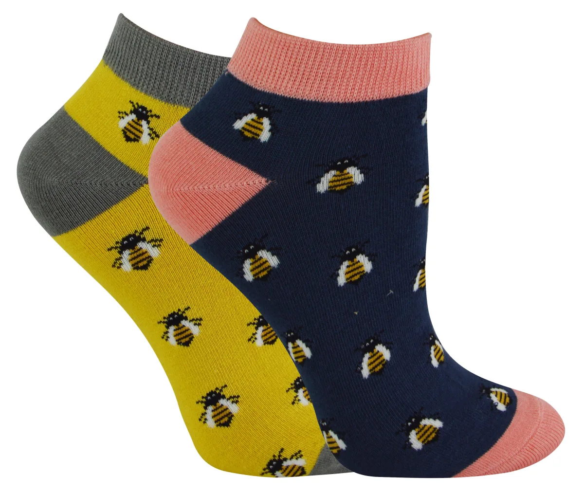 Miss Sparrow – Dames Bamboe Trainer Sokken – Honey Bees (Marine)