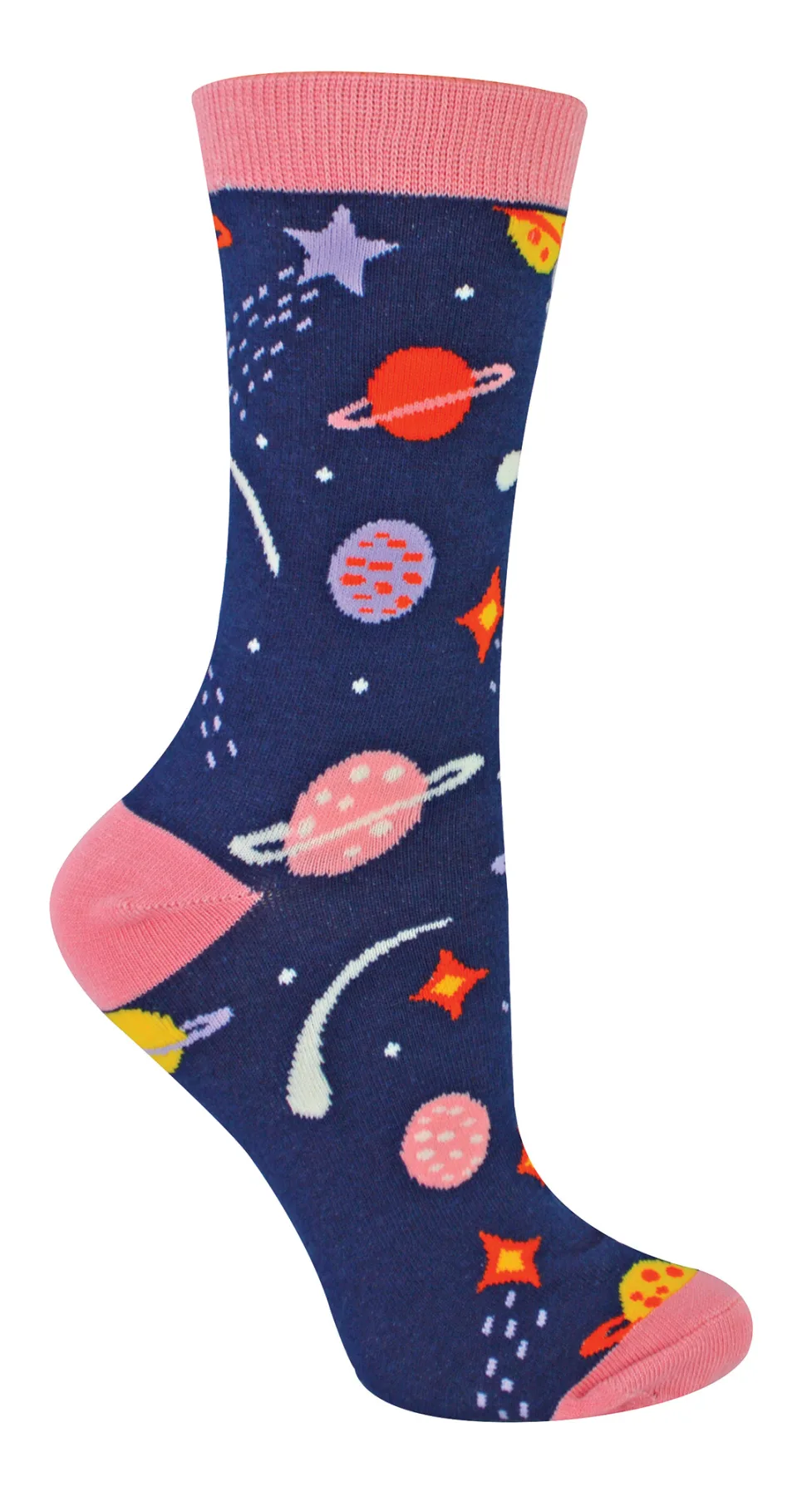 Miss Sparrow – 3 Paar Dames Ruimte Sokken met Zonnestelsel en Sterrenpatroon – Ruimte (Marine)