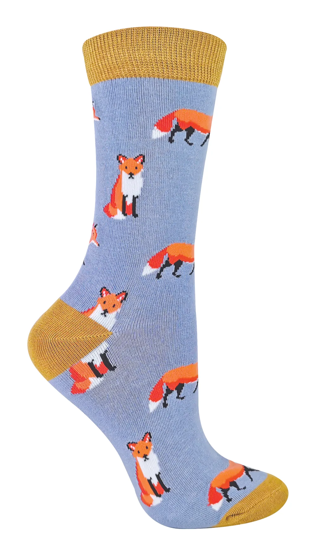 Miss Sparrow – Dames Animal Design BamboeSokken – Fox (Blauw)