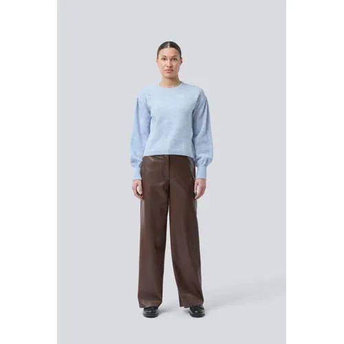 Modström imitatieleren wide leg regular waist casual broek donkerbruin