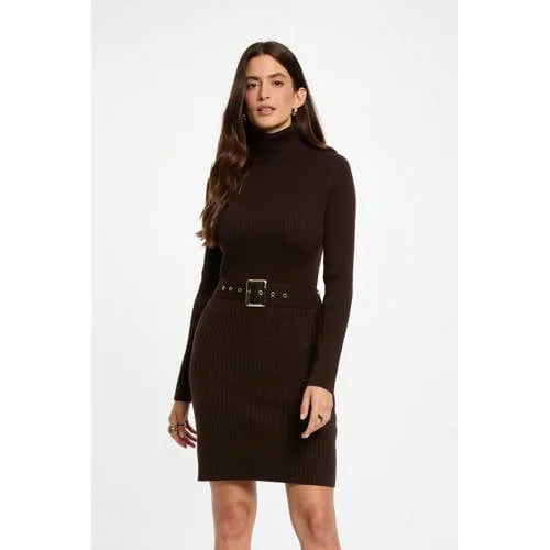 Morgan jurk met col donkerbruin
