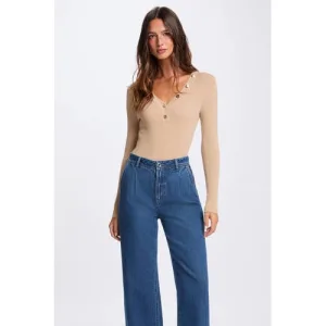 Morgan top met contrastbies camel