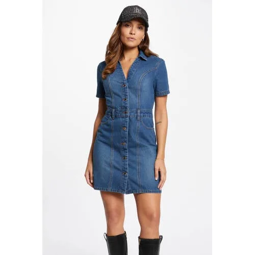 Morgan jurk met contrastbies en contrastbies zwart/ lichtroze