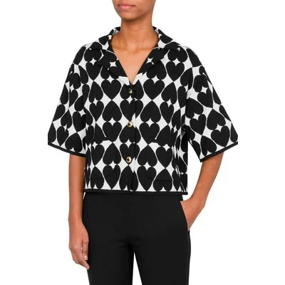 Love Moschino T-shirt Met Hartjesdesign, Zwart, Voor Dames
