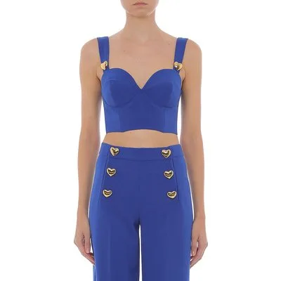 Moschino Bralette In CrÊpe Heart Buttons Blue