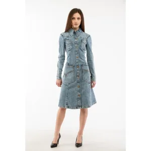 Moschino Teddy Buttons Denim Dungarees Dress Blue