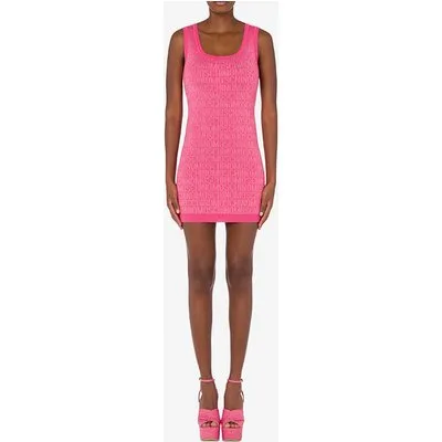 Moschino Allover Logo Wool Dress Fuchsia