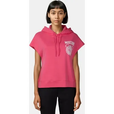 Moschino Allover Logo Cropped Sweatshirt Pink