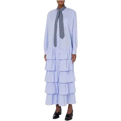 Moschino Cotton Poplin Dress Tie Blue