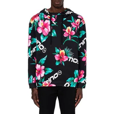 Moschino Hibiscus Print Hoodie Black