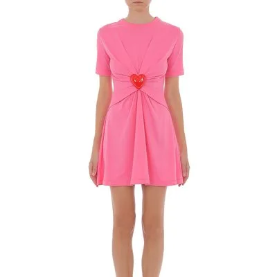 Moschino Polka Dot Dress In Trompe-l’Œil Poplin Pink