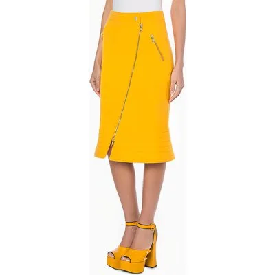 Moschino Couture Biker Wool Crepe Skirt Yellow
