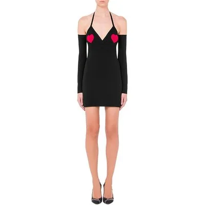 Moschino Red Hearts Stretch Viscose Dress Black