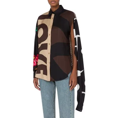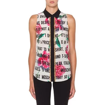 Moschino Top In CrÊpe De Chine Slogan & Flowers White