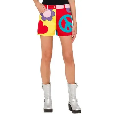 Moschino Symbols Embroidery Stretch Cotton Shorts Multicolor