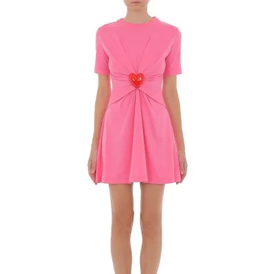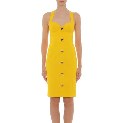 Moschino Enver Satin Heart Buttons Dress Yellow